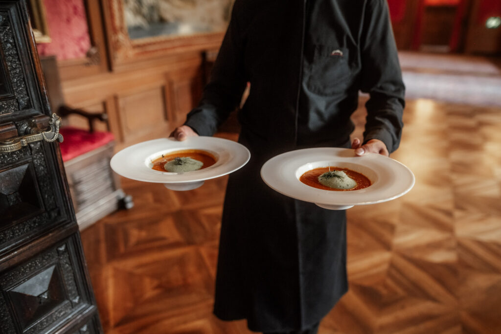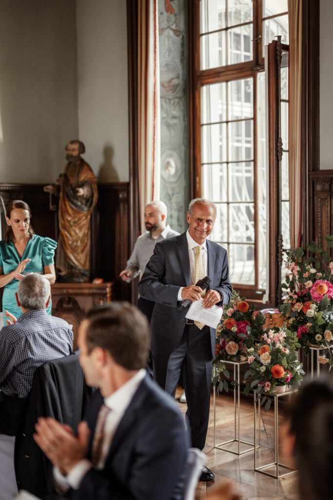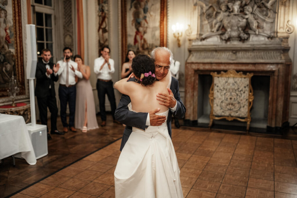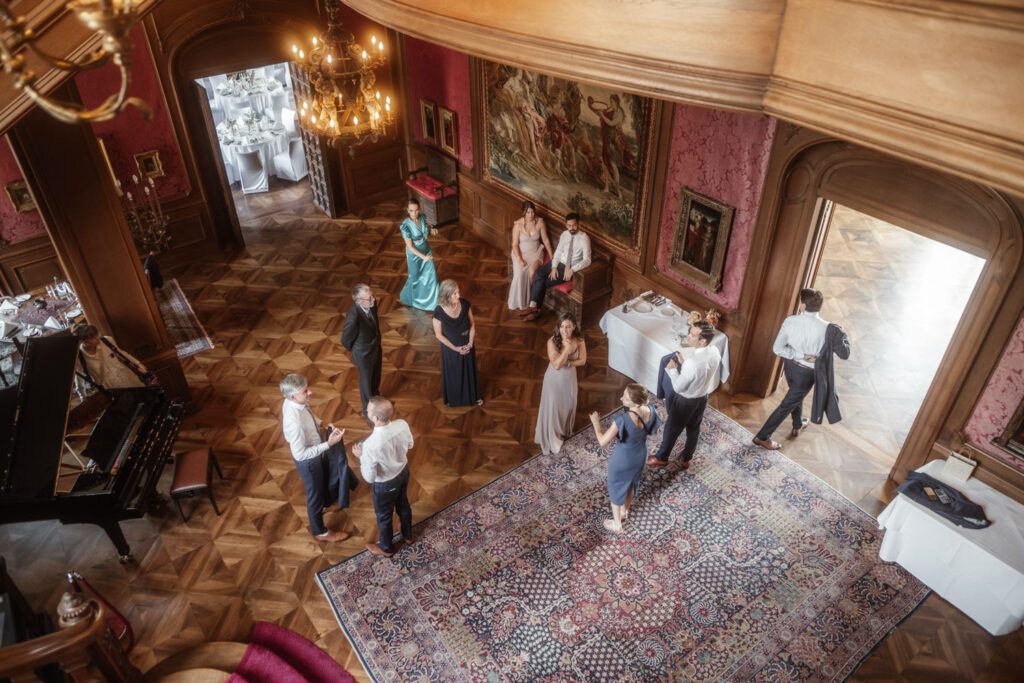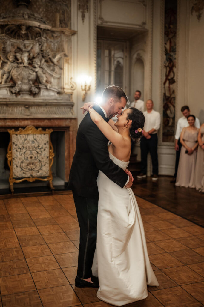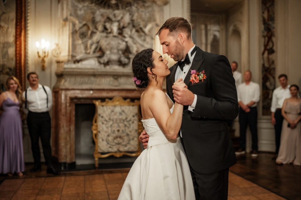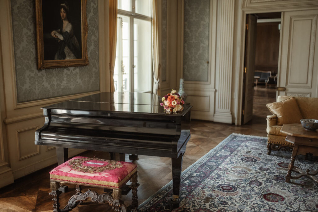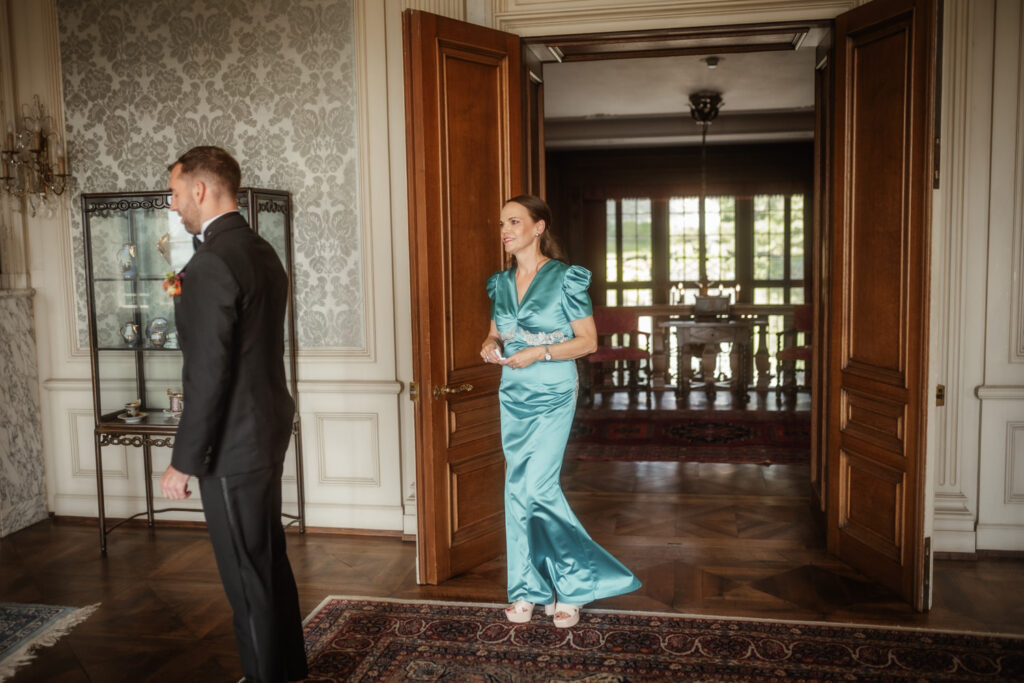 Als Hochzeitsfotografin war ich nicht nur eine stille Beobachterin, sondern auch eine begeisterte Teilnehmerin, die in dieser inspirierenden Umgebung zur Hochform auflief. Die St. Charles Hall, erbaut im neobarocken Stil, ist ein architektonisches Meisterwerk! Die Villa ist reich geschmückt mit kunstvollen Wandmalereien und opulenten Kronleuchtern, die das Licht auf eine Weise reflektieren, die jeden Raum in warmen Glanz taucht. Besonders beeindruckend sind die zahlreichen barocken Details, die den Sälen eine unverwechselbare Magie verleihen und sich perfekt als Kulisse für solch emotionale Momente eignen.