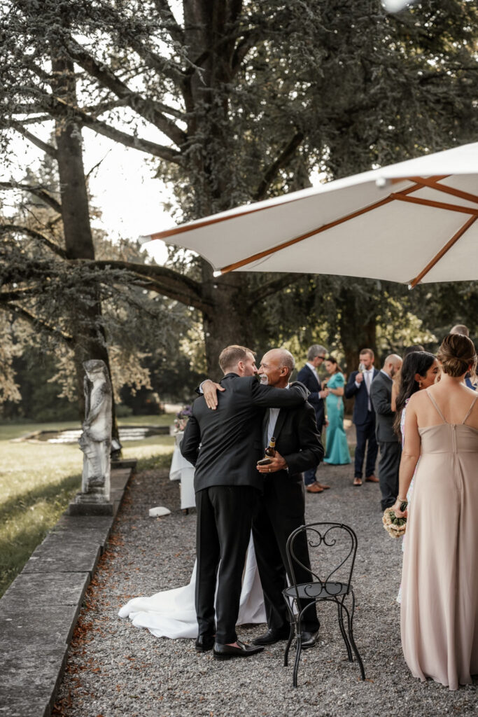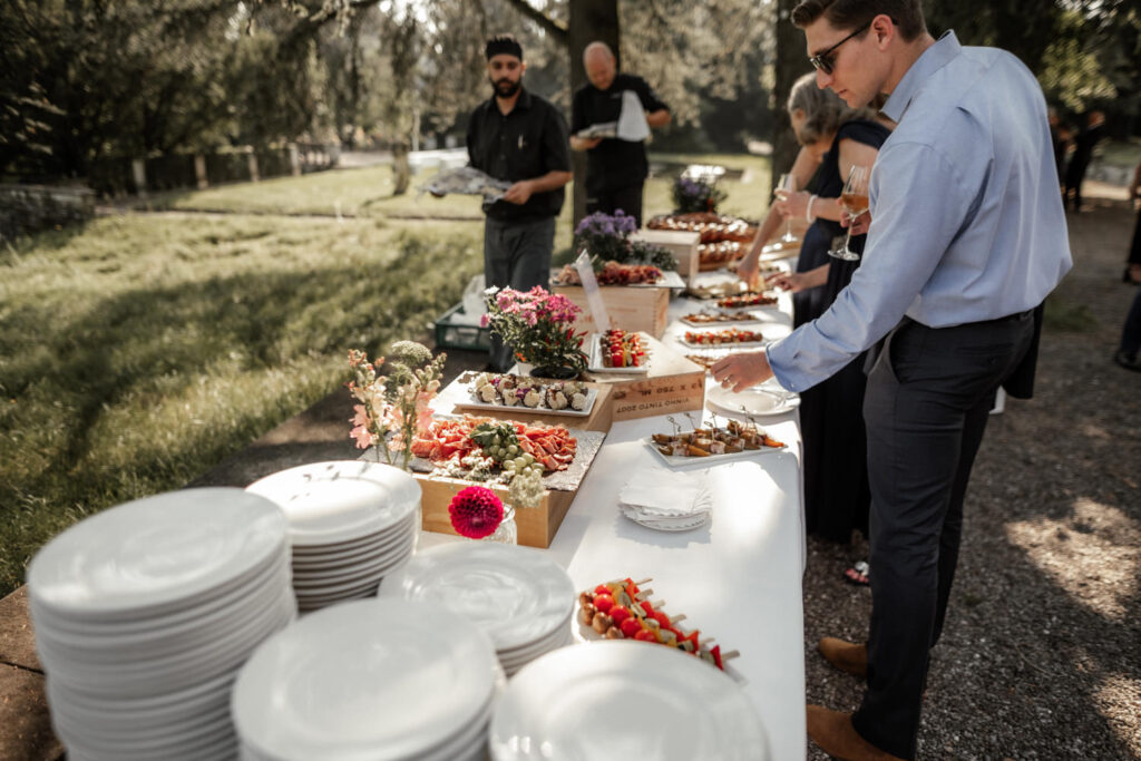 An diesem herrlichen Sommertag wurde das Ambiente noch vom strahlenden Wetter gekrönt, das den Blick auf den Vierwaldstättersee freigab. Die Aussicht auf die glitzernde Wasseroberfläche, eingerahmt von den majestätischen Alpen, verlieh der Feier eine Kulisse, wie sie sich Elycia und Steven nicht schöner hätten wünschen können.