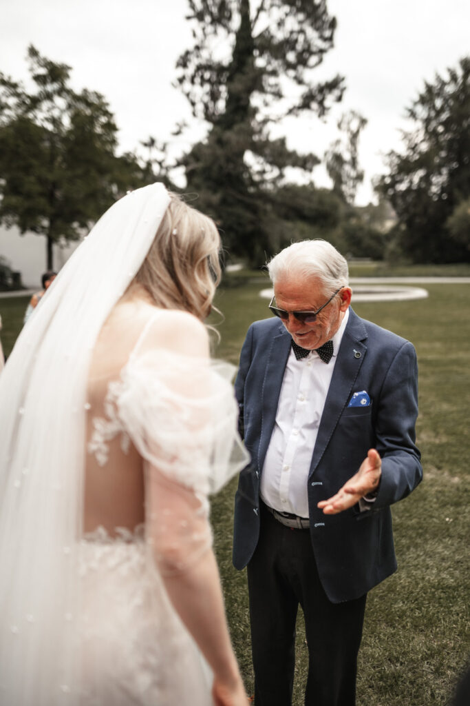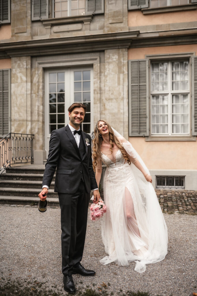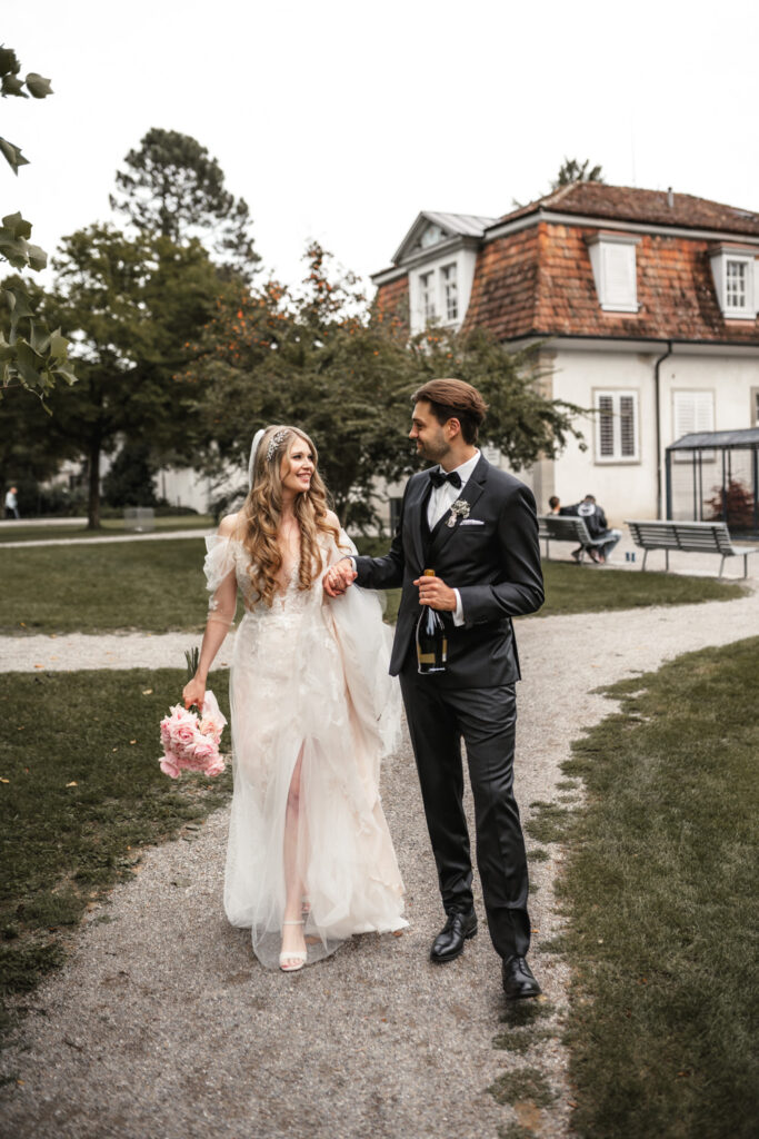 Nachdem das offizielle Ja-Wort gesprochen war, ließen Nina und Joel den Korken knallen und feierten im Anschluss im malerischen Lindengut Park. Inmitten von altem Baumbestand und duftenden Blumen genossen sie einen intimen Aperitif im Kreise ihrer engsten Familienmitglieder. Die Liebe, die in der Luft lag, war greifbar, und die Glückwünsche klangen wie Musik in ihren Ohren.