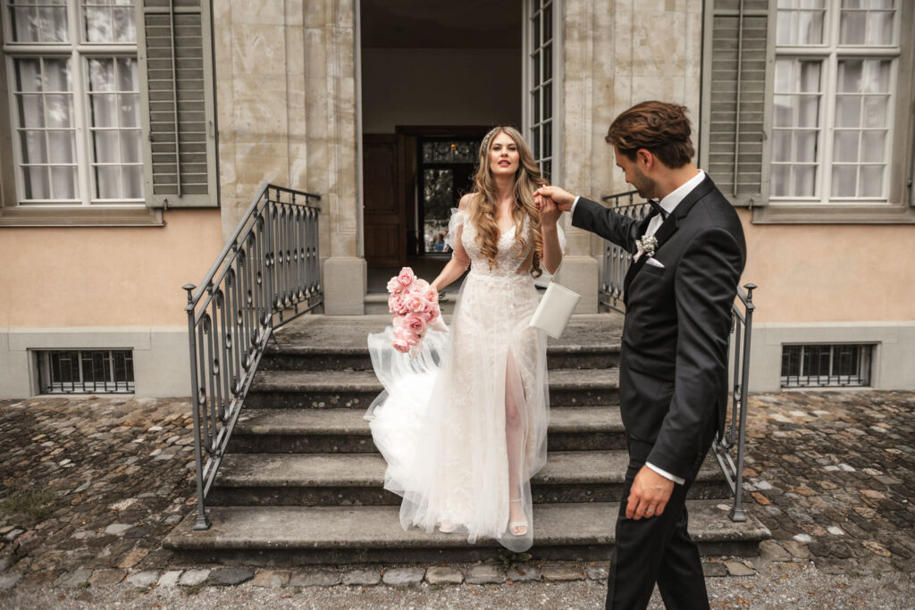In der romantischen Atmosphäre der Villa Lindengut in Winterthur wurde eine Hochzeitsträumerei wahr – eine Szene, die an die Glanzzeiten von Kaiserin Sissi erinnerte. Hier, umgeben von pastellfarbenen Wänden und einem Hauch von Nostalgie, gaben sich Nina und Joel das Ja-Wort. Der Trauraum erstrahlte in sanftem Licht, während die beiden sich mit strahlenden Augen und Herzen voller Vorfreude in die Ehe begaben.